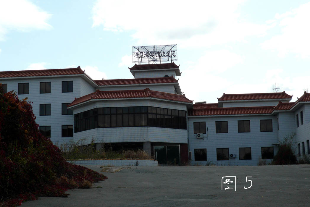 ![]() (图三)对法轮功学员施以酷刑的净月宾馆的荒芜衰败全貌,阴森邪气笼罩整个宾馆。 |