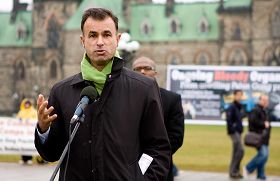 ![]() 国会议员基施•马丁(Keith Martin)在集会现场演讲。 |