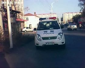 我说:“你们来了,正好给你们看看。”我不让他们揭但他们还是揭下来了,他们说他们就是干这个的,吃这碗饭的,不容易。我告诉他们“法轮大法好”,接着我说这里不让贴,那我到别处贴去。说完我就往前走了。他们上车在后面跟着。我不管他们跟不跟,救人要紧,我还有四张必须都得贴出去。他跟他的,我贴我的。我又选好了地方,贴上两张。他们又下车要去揭。我坚决阻止他们不让揭,再次告诉他们这是救人的,你们不能揭。我并严厉的问他们:你们那不让贴这儿不让贴,那你让我上哪儿贴去呀?其中一个警察说:“你去政府大院贴去。”我说我不知道政府大院在哪里?说完我就求师父加持,不让他们揭,结果他们真的没有揭那两张,就把车开走了。