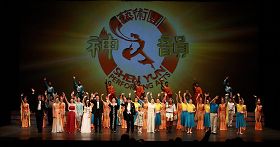 ![]() 二零零九年十月十一日,神韵纽约艺术团在多伦多中秋节期间的演出圆满结束,演员们在满场观众的热烈掌声中谢幕。 |