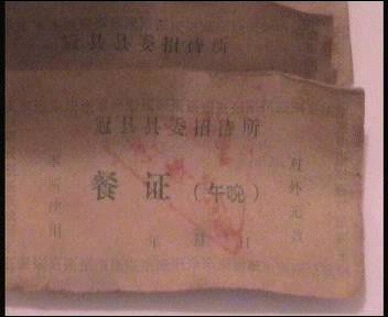 【明慧网二零零九年十一月五日】一九九二年十一月十二日,慈悲伟大的李洪志师父应冠县多家单位的邀请,率弟子一行四人来到山东省冠县,将法轮大法(法轮功)亲自送到有缘人的手中。这些饭票就是当时师父来冠县时购买的县委招待所的餐证。