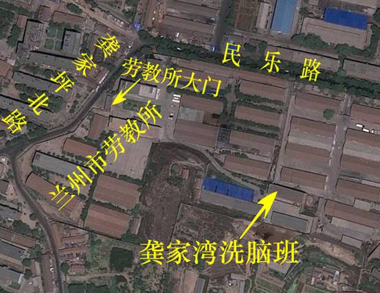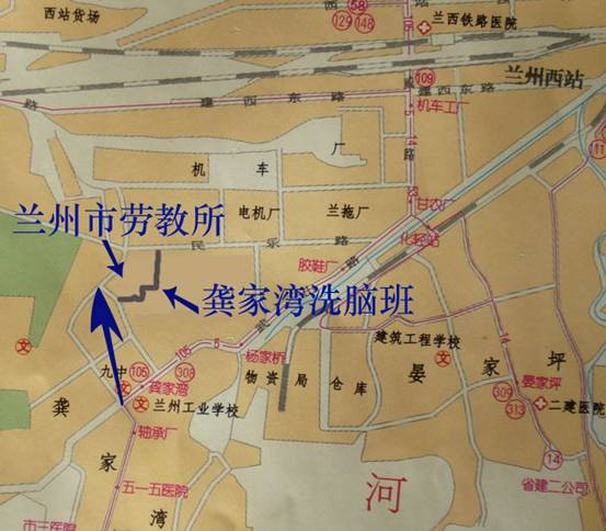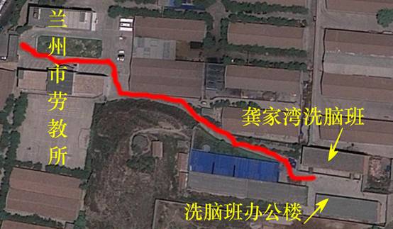红线是从兰州市劳教所大门至龚家湾洗脑班的行走路线