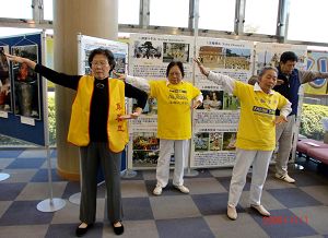 这是法轮功学员连续第四次参加饭岛町一年一度的文化节。当地的很多民众都已了解了法轮功。学员们在文化节的展位上炼功,向来参加文化节的人们发送法轮功的真相资料,很多人都愿意接。