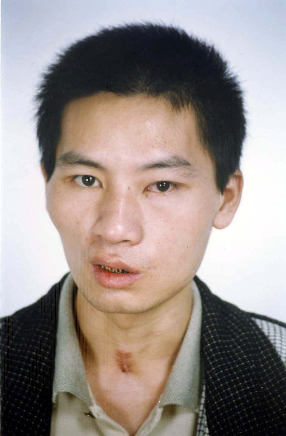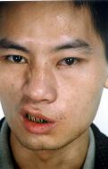下图是雷井雄在住院治疗一个多月以后的照片,从照片中仍可明显看到他面部严重受伤的情况(雷井雄在住院治疗两个多月后,回到家中)。