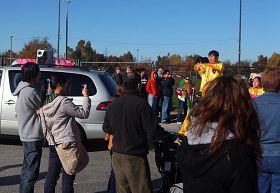 ![]() 华人学生纷纷对着法轮功学员的游行队伍拍照 |