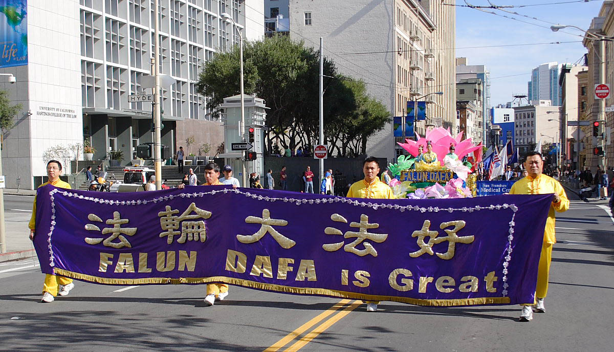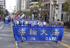 法轮功学员是第六次参加旧金山老兵节游行,组织者对法轮功的参加表示非常的欢迎。