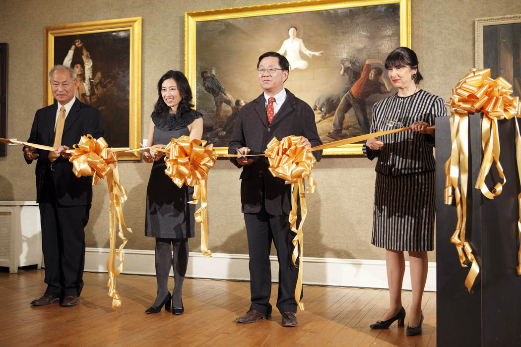 ![]() 大赛评委主席张昆仑教授、新!唐!人:九项大赛组委会主席马丽娟、新!唐!人:总裁李琮、与萨玛港笛艺术馆主任阿夫曼(Kathleen Arffmann)为第二届“全世界华人人物写实油画大赛”入围作品展开幕剪彩。 |