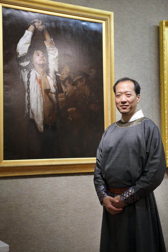 张昆仑认为,艺术的好坏,既能标志着这个社会目前道德水准如何,同时也在非常有效的影响着整个社会。新!唐!人:油画大赛对归正人类审美观,和对人类道德回升起着重要的作用。