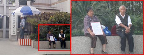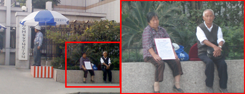![]() 疲惫的二老坐在上海长宁公安分局门口 |