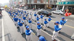 ![]() 法轮功学员组成的天国乐团第二度受邀参加台湾高雄县桥头乡踩街游行 |