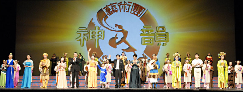 ![]() 二零零九年十二月十九日晚,神韵美国乔治亚州奥古斯塔市第二场演出结束后演员谢幕 |