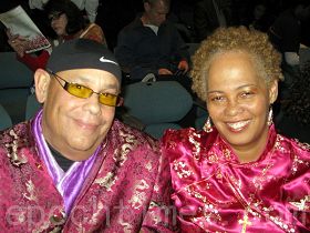 曾经多次到中国进行人文摄影创作的知名摄影家朗•李(Ron Lee)同妻子一起穿着一身传统的中国唐装前来观看神韵纽约艺术团在奥古斯塔市的第二场演出。