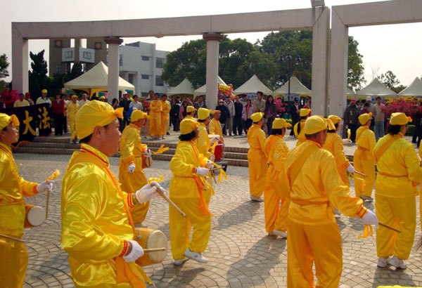 法轮功学员及其腰鼓队在二十日举行了踩街活动,由当地员警前导,绕行路竹市区。鼓乐震天吸引许多民众。收到法轮大法简介资料的人们满心欢喜,赞赏有加。