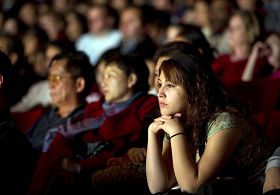 休斯顿神韵晚会的观众聚精会神观看演出。
