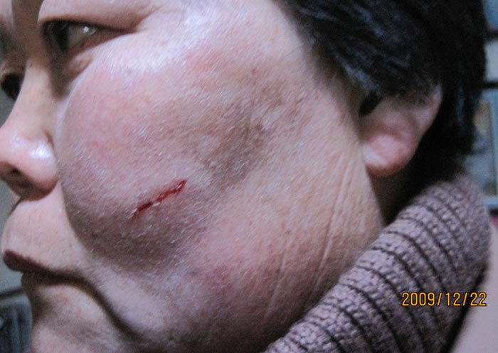 ![]() 这是左泽文家属被打后的照片 |