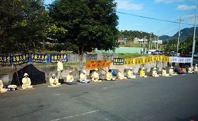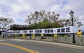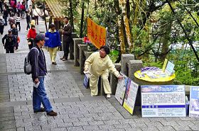 ![]() 中台禅寺附近随时可见到法轮功学员拉横幅方式和平抗议中共迫害 |