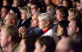 前来观看晚场演出的ABC电视台新闻主播赫尔.克莱门特(Hal Clement)先生被神韵艺术深深折服。他赞叹:“晚会中的舞蹈非常美,让人印象深刻。尤其是很多舞蹈都来源于优美的故事,不仅形式上非常美,而且非常有内涵。他说:“这样的演出使西方观众能够亲近中国艺术,亲近中国的舞蹈、音乐等等。”
