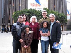 ![]() 墨西哥民族舞蹈演员巴里奥斯(Ricio Barrios)(左二)全家来观看神韵晚会。 |