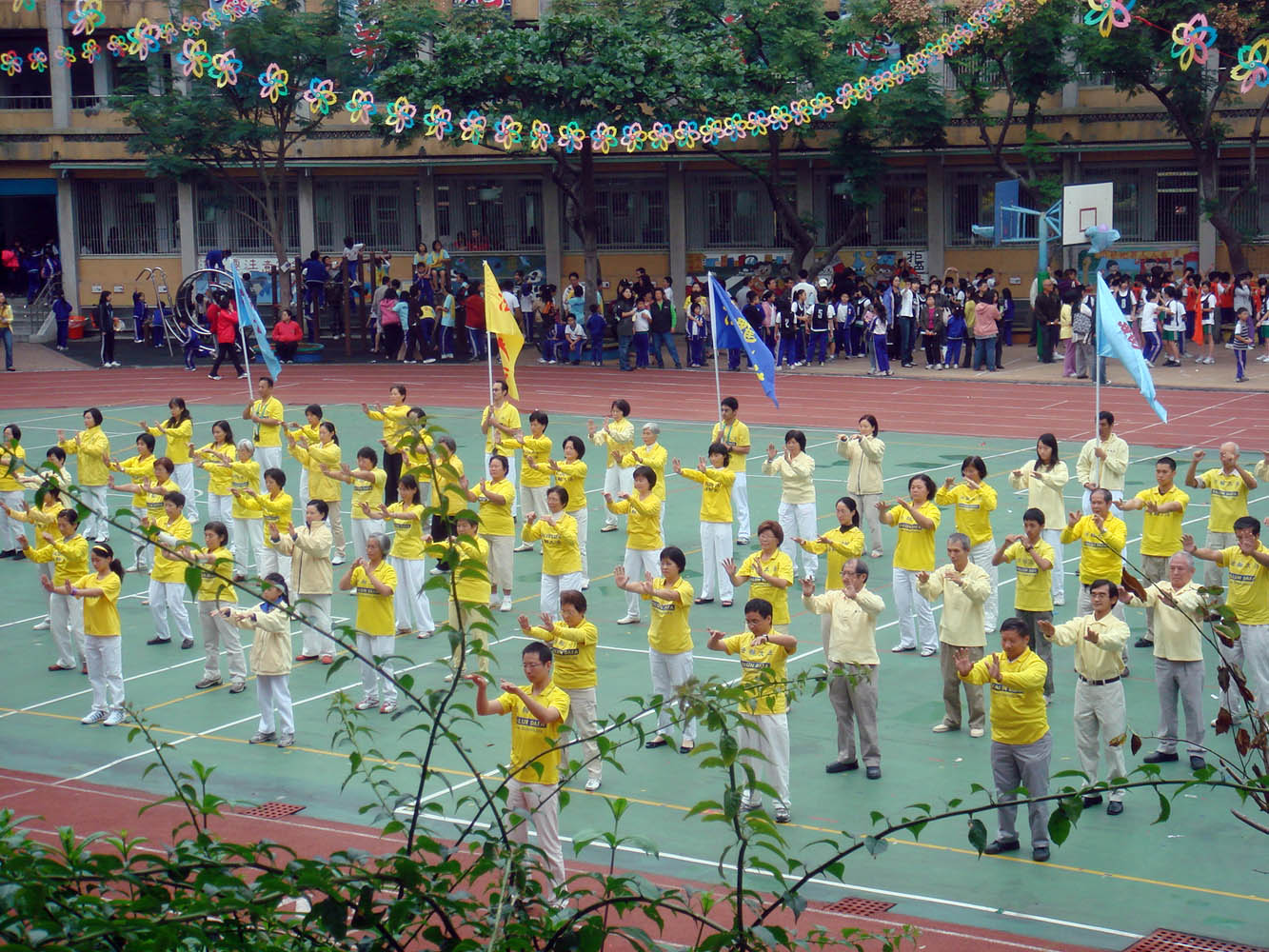 ![]() 台北法轮功学员受邀参加万大国小三十二周年校庆日的功法表演 |