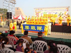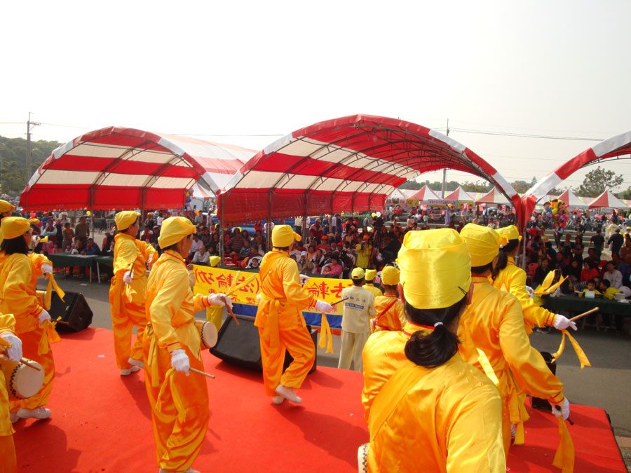 台湾高雄县文化系列活动,法轮功学员组成的腰鼓队应邀表演 |