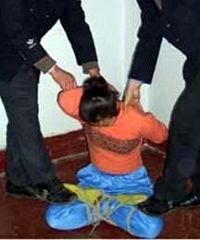 ![]() 酷刑演示:王大功(吉林市)遭天安门派出所、吉林市高新区洗脑班手铐反扣双臂,往地下墩 |