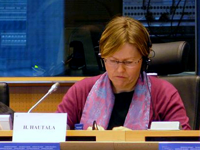 ![]() 欧洲议会人权委员分会主席海迪•郝塔拉女士在欧洲议会关于中国人权的听证会上 |