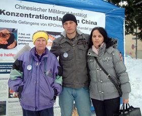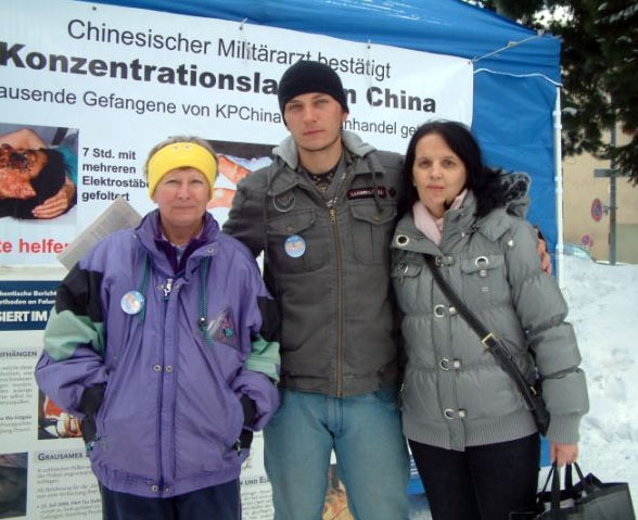 ![]() 来自达沃斯的母子(右一,右二)表示:虽然离中国很远,他们也要帮助制止迫害 |