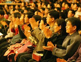 ![]() 美国神韵艺术团在韩国首尔演出,造成轰动,八日下午最后一场大爆满,演出受到韩国政界、商界、文艺界、娱乐界知名人士的推崇与赞扬。 |