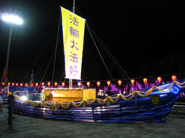 在兰阳平原广阔的“台湾灯会”会场上,灯海灿烂,人潮汹涌,一片繁荣升平的热闹景象。一位站在法轮功学员制作的花灯前久久不去的观众赞叹道:“我从来没有见过这样的花灯,太美妙了,站在这里就是有种说不出来的很舒服的感觉。”