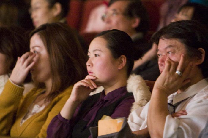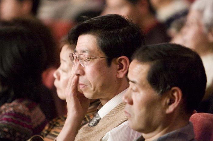来日本两年多的王先生观看了演出,红着双眼走出会场时谈起感想说:“感觉纯善、纯美,确实没见过,挺漂亮,感觉特别美,所有节目都是这样,节目像故事一样。”