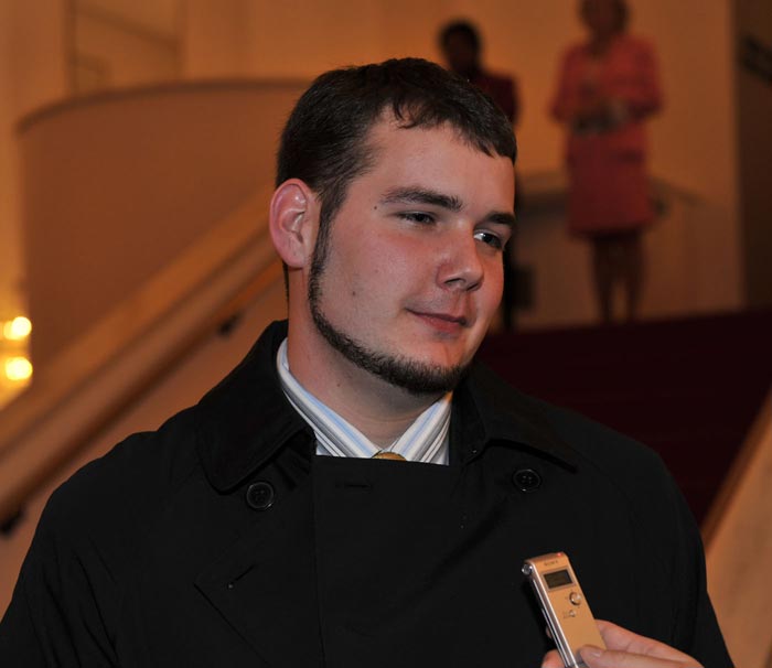 ![]() 园景设计师Richard Miller 和友人一起前来观看神韵晚会。 |