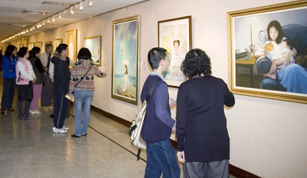 真善忍国际美展的画作反映法轮大法(又称法轮功)的美好,并揭露中共迫害法轮功的真相。这些一流的画作,本身就是最好的真相,并吸引许多画家慕名前来,一位画家感慨的说:画的这么好的画家,在台湾很难找到了。