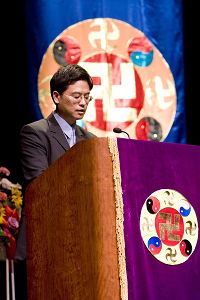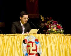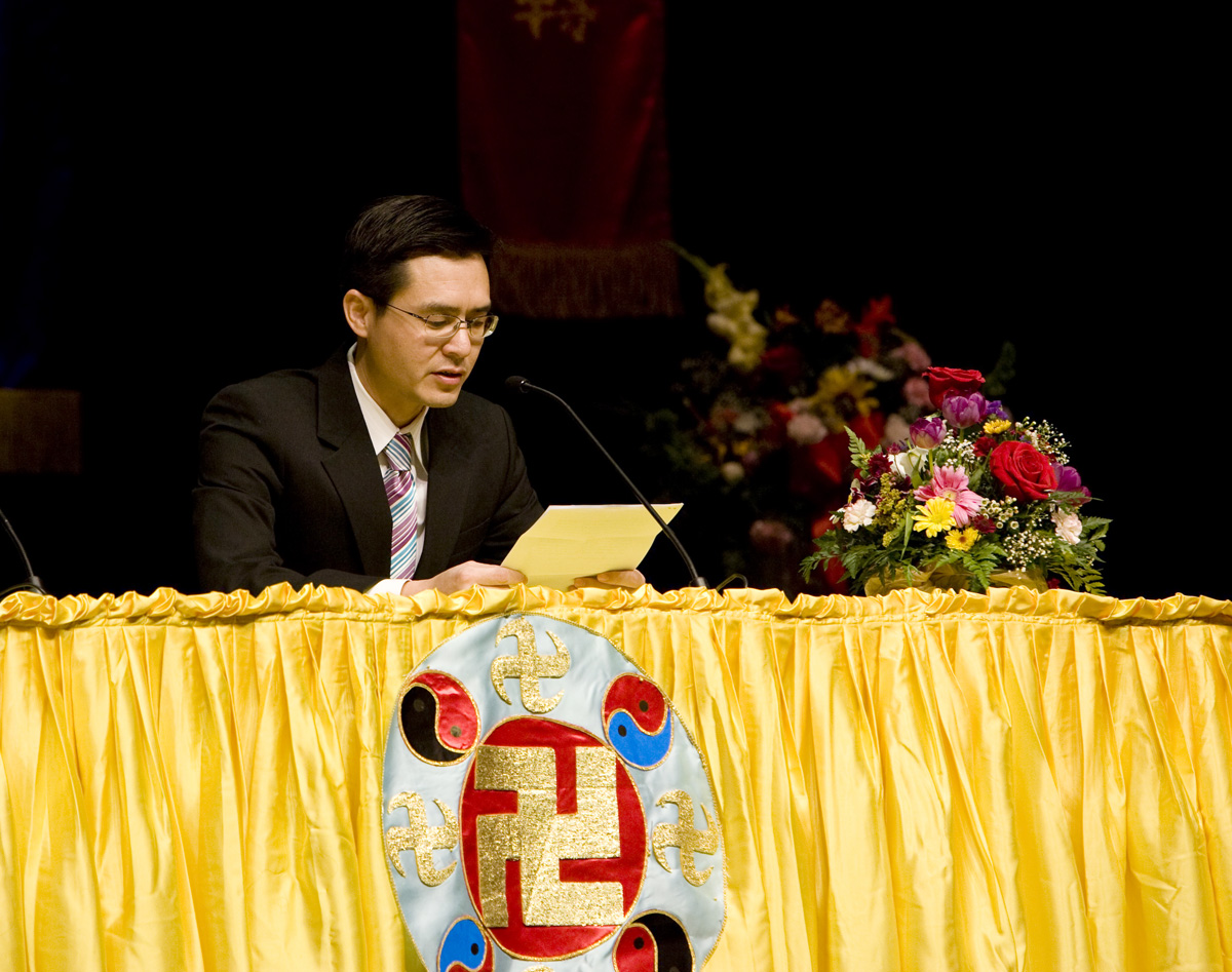 在法会结束之前,大会播放了零九年各地法轮功学员,包括中国大陆,及各界人士向法轮功创始人李洪志老师拜年的录像。大会于下午约五点圆满落幕。