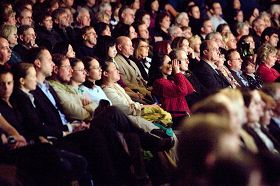 ![]() 法兰克福世纪大厅内人们全神贯注的看着神韵演出 |