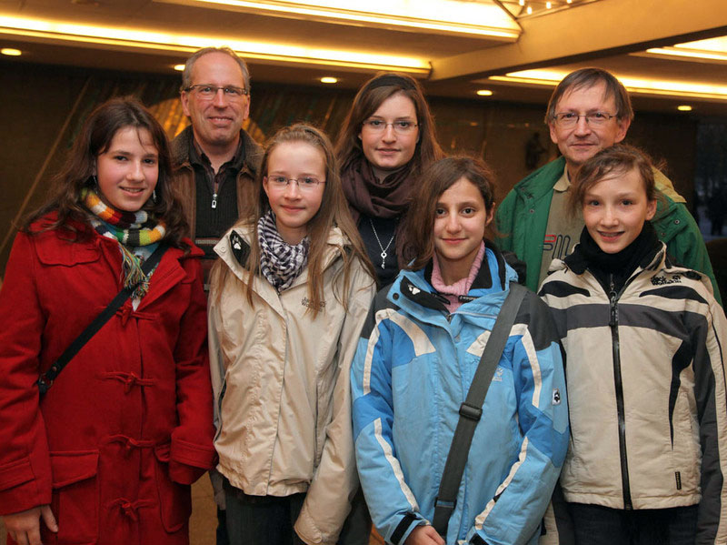 ![]() 音乐学校校长托马斯•冯•诺维斯基先生(后排左一)和他的学生们一起观看了神韵演出 |