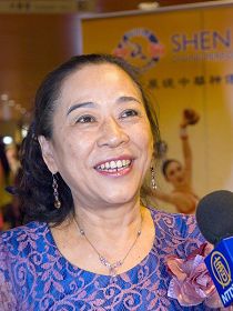 她去年看神韵时从头哭到尾,看到整场的佛、天使、仙女散花的景象,今年看到《婆罗花开》舞剧时也哭了,她感动的说:“看到那种情形特别喜悦,从菩萨出来就开始哭,那是个人的感觉,平常我也尽量做善事。”