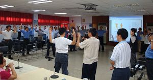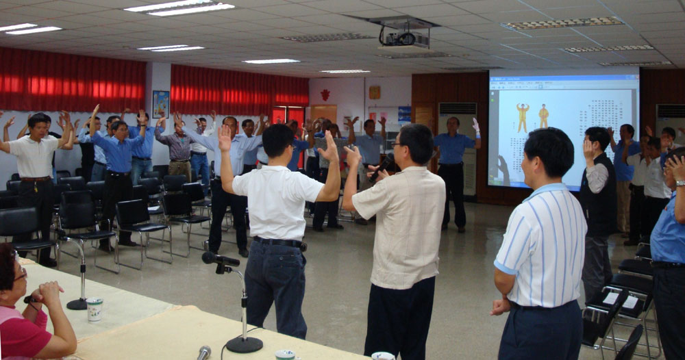 听完学员见证后,参与的员工相当受触动,非常认真的跟着法轮功学员学习炼功动作。 法轮功学员还向参加讲座的员工们讲述了在中国大陆,中共如何残酷迫害法轮功的真相。
