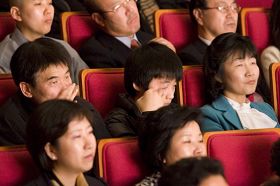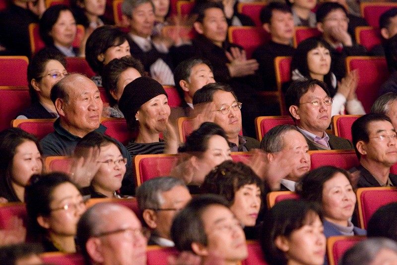 韩国前将军、庆云大学名誉教授同时也是位散文作家的刘相钟先生,于周日(二月一日)看了神韵演出后,意犹未尽,马上又购票,于次日再度前来观赏。他说:“昨天我看了演出,今天我再来剧场要看第二次。昨天我来晚了,没有看到开始的部份,非常惋惜。今天我约几个朋友一起来的。”