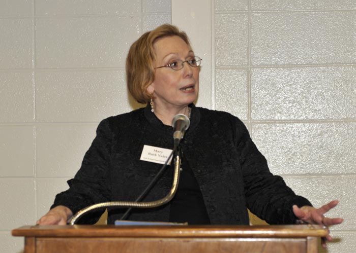亨茨维尔市学区助理总监玛莉·露丝·叶慈(Mary Ruth Yates)博士代表学区给神韵艺术团颁发褒奖证书,以表达对神韵艺术团的感谢。赠书中写道:“表彰你们以中国新年晚会与我们社区分享。通过接触历史,我们可展望未来的可能性。”