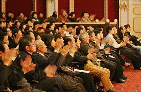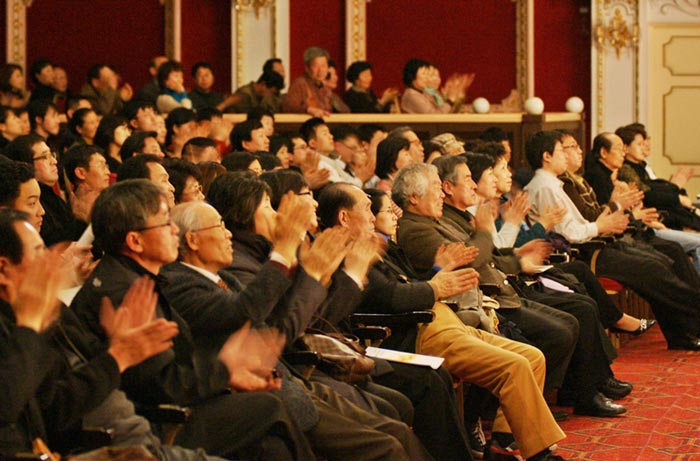 ![]() 神韵艺术团在首尔的第四场演出,观众聚精会神的观看 |