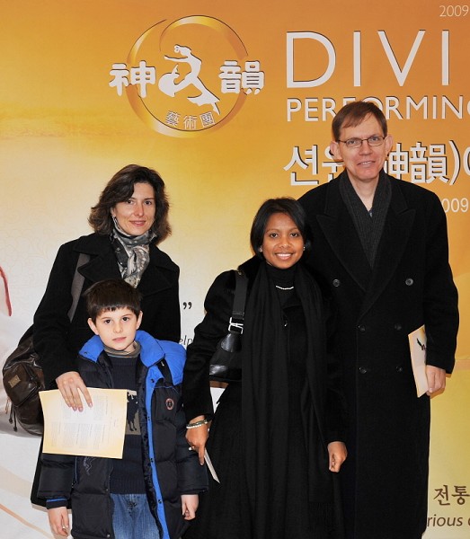 世界最大商用飞机制造公司(AIR BUS)韩国支社社长 Nicole Seine,带着他的印度尼西亚籍的太太还有朋友和朋友的儿子四人,一起观赏了神韵在韩首尔站的最后一场演出。