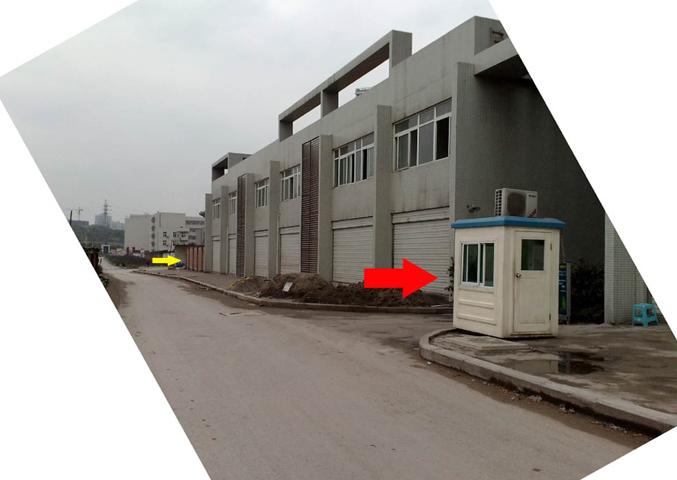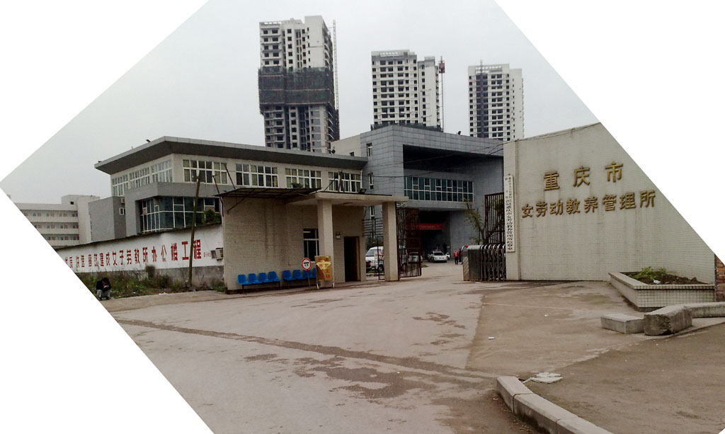 重庆市沙堡女子劳教所警察住宅小区侧门(图中红色箭头所指)直接通向女子劳教所外大门(图中黄色箭头所指)