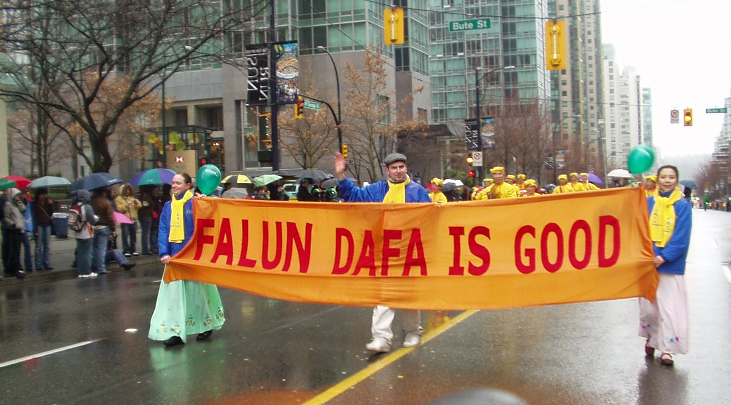 加拿大温哥华圣派翠克节中的法轮功腰鼓队 |
