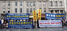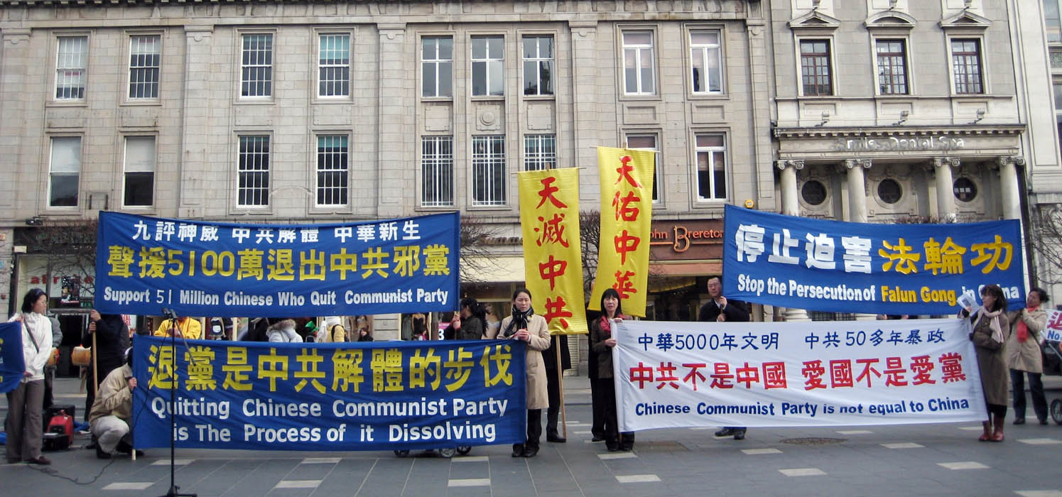 爱尔兰退!党!服务中心义工叶女士在集会上表示,“我们祝贺已经道德觉醒,声明退出中共的五千万民众,同时我们也继续呼吁尚未三:退.(退!党!、退*团-、退*队-)的中国人,抛弃对中共的幻想与恐惧,勇敢的摆脱中共的精神控制,选择自由与光明。早日退出中共,不要成为中共恶党邪灵的陪葬品。”