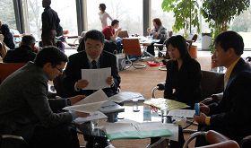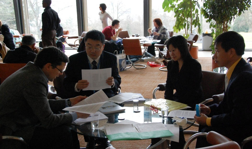 ![]() 联合国人权官员犹拉其(左一)与法轮功人权代表及法轮功学员会谈 |