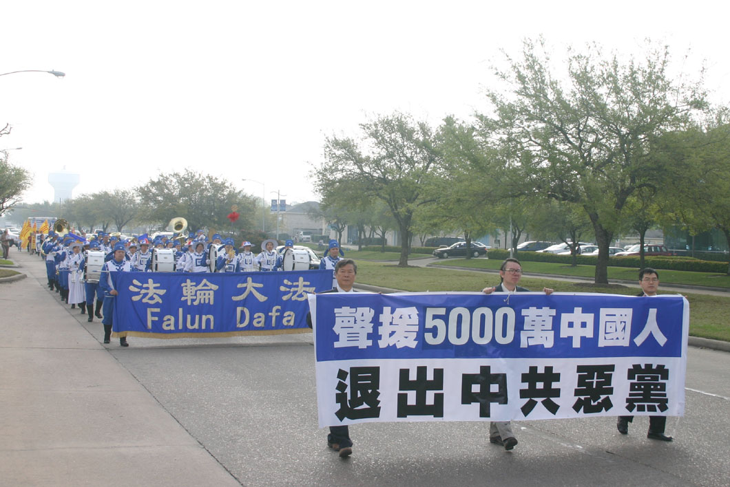 当日是休斯顿民众在中国城首次举行声援退!党!大游行,吸引了当地社团、达拉斯、奥斯汀的退!党!服务中心义工加入。三月二十一日上午九点半,以休士顿中国城顶好超市外侧公共草坪为起点开始游行,沿着休士顿主要干道,中国城必经之路的百利大道(Bellaire Blvd)、合作路(Corporate Dr.)、环绕中国城,回到百利大道(Bellaire Blvd)与内特(Ranchester Dr.)交叉点,行程约一点五英里。