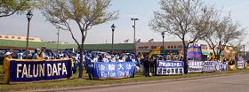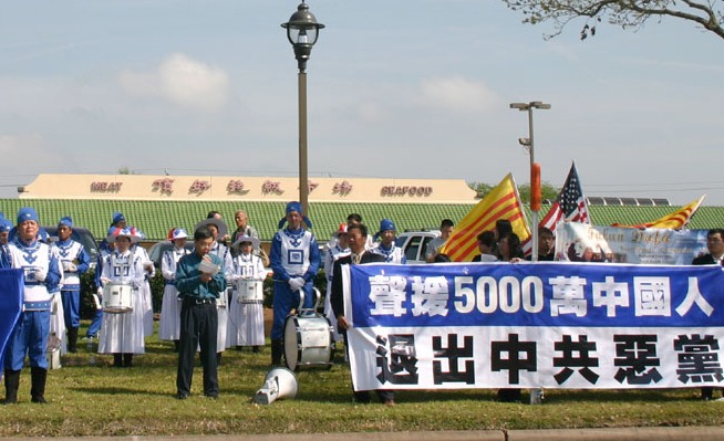 美南法轮大法学会宋先生发言,他说:“自从一九九九年开始,中共对法轮功的迫害一天都没停止过。明慧网记载,在过去十年的迫害中,至今已经得知有三千二百五十三名法轮功学员被迫害致死,数十万人被关进监狱和劳教所,成千上万人被投入精神病院,强行注射破坏神经的药物。”他呼吁各界人士共同努力,结束中共对法轮功学员长达十年残酷的迫害;呼吁所有参与迫害的人不再充当中共的打手。尽快退出中共。退!党!是中国人获救的希望,顺应天意、走向新生。