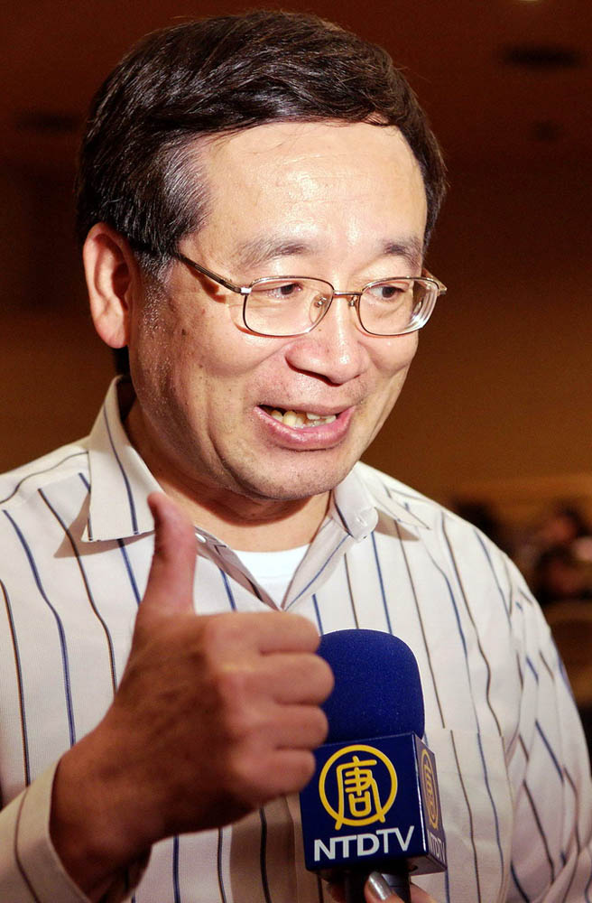 ![]() 魏哲和(左)与夫人李素瑛一起观赏神韵演出 |