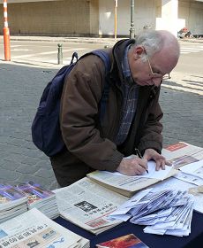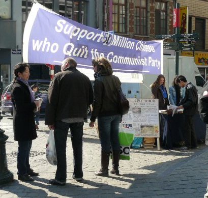 昂瑞克先生是在欧盟委员会从事工业、企业工作的官员,他在活动现场向退!党!中心的工作人员表示,他经常看《大.纪.元;时报》,而且知道在中国发生的事情,尤其是中共对人权的践踏,新闻没有自由,而且被利用来为当局服务。他希望了解更多的情况,并祝声援退!党!活动成功。