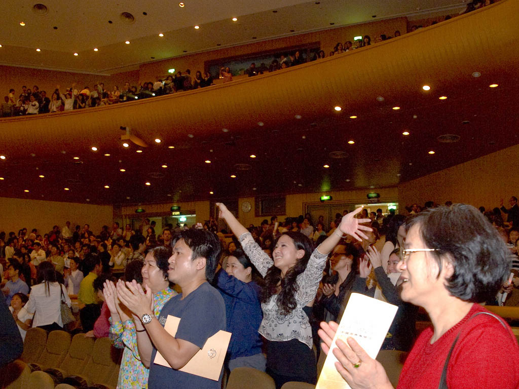 ![]() 神韵在新竹的压轴场,观众热情地向艺术团招手致意 |